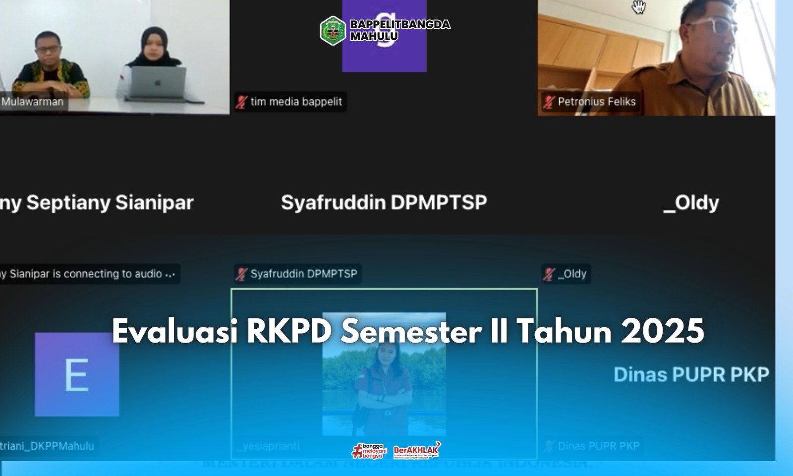 bappelitbangda.com — Pemerintah Kabupaten Mahakam Ulu melalui Badan Perencanaan Pembangunan, Penelitian dan Pengembangan Daerah (Bappelitbangda) melaksanakan kegiatan Konsinyering Evaluasi Rencana Kerja Pemerintah Daerah (RKPD) Semester II Tahun 2025 yang dimulai pada Senin, 9 Maret 2026. Kegiatan ini dilaksanakan secara daring dan dijadwalkan berlangsung hingga 13 Maret 2026 dengan melibatkan seluruh perangkat daerah di lingkungan Pemerintah Kabupaten Mahakam Ulu.